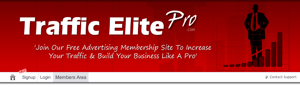 TrafficElitePro.com is not a multi-level marketing scheme or a get-rich-quick program, we are purely an advertising platform. We don't require you to have a website or sell any product to use our service. We do not require you to refer anyone to our site to use our service. You won't get rich by using our internet advertising program. This website uses cookies. Being a member and/or continued use of this website indicates that you accept our cookies policy. Thank you, we very much appreciate your support and being a member on our site! Privacy Center | Terms and Conditions | Earnings Disclaimer | Spam Policy | Privacy Policy © Copyright - TrafficElitePro.com ![]() |